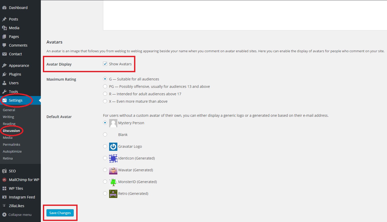 One more thing, navigate to Settings > Discussion > Avatar Display > and ensure that the box next to “Show Avatars” is checked.