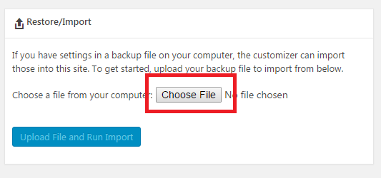 - Click “Choose File” then browser your backup .json file.