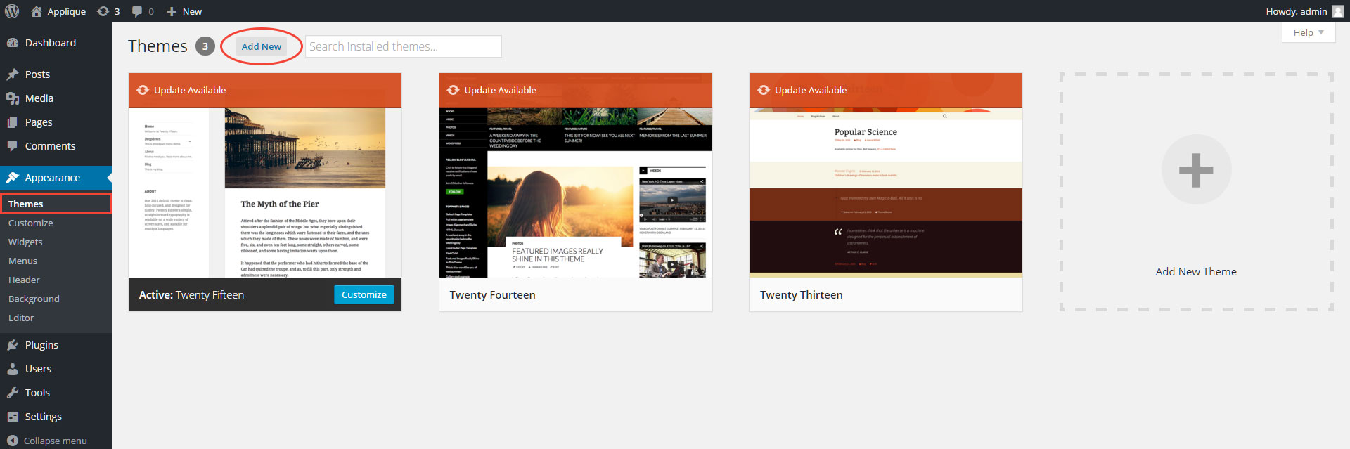 - Within your WordPress Dashboard, navigate to Appearance > Themes.