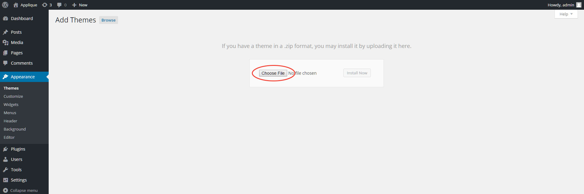 - Click “Choose File”to find the “applique.zip” file on your computer.