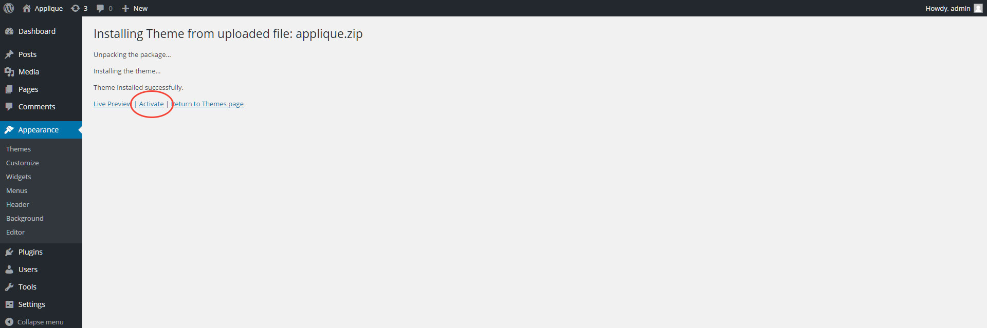 Please extract that file and keep it somewhere safe. In this section, you will learn how to install Applique as your theme: