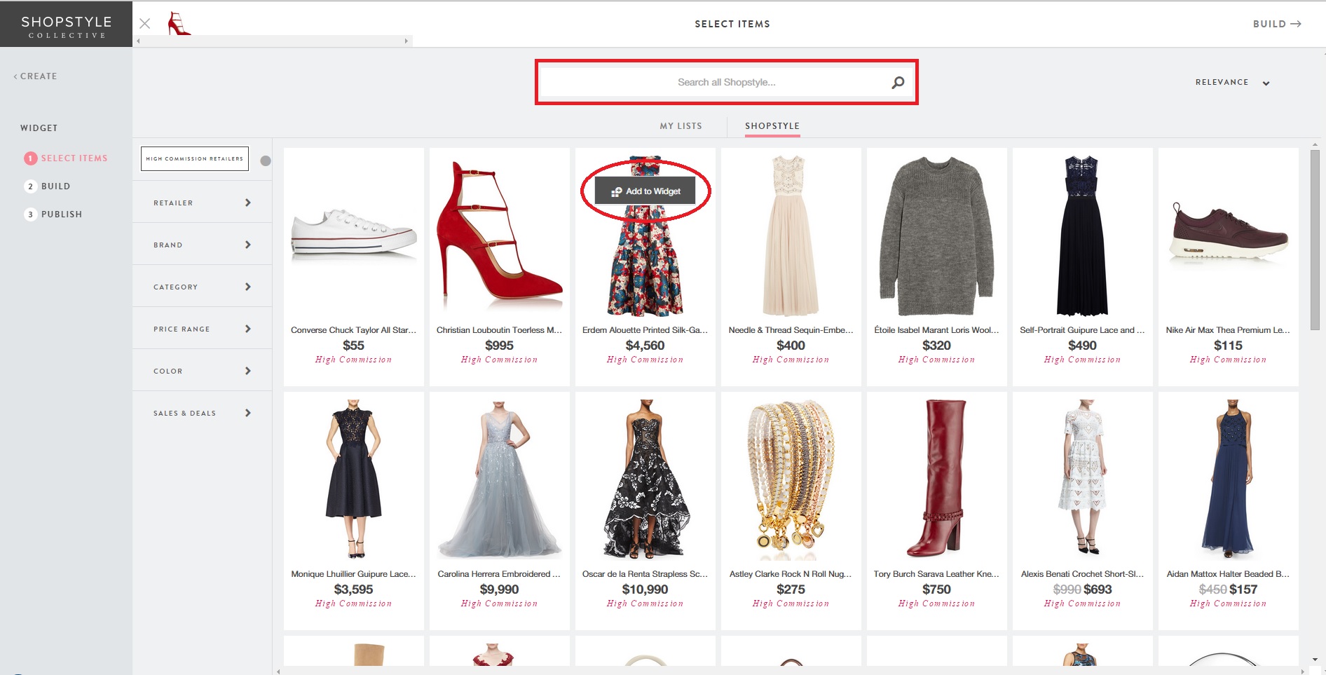 - Select Items that you desired. You can search the item or direct choosing, then click ‘Add to Widget’.