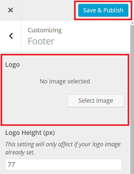 You can insert your logo in footer just simply go to WordPress Dashboard > Appearance > Customize > Footer > upload your logo by clicking ‘Select Image’.