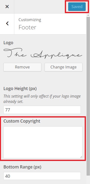 The footer area is the lower portion of theme that will appear on all pages of your site. Applique has five different contents, these include: