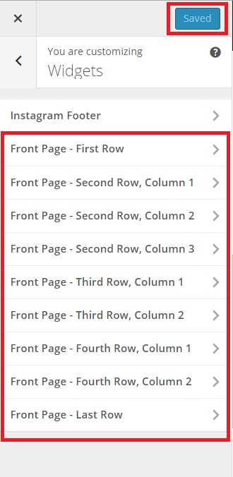 After, you will to click ‘View Page’ at the top of this screen, then click ‘Customize’ you will direct to Customizer. Here, click Widgets > choose all lists that titled ‘Front page’ > insert you’re the desired widgets. On the right of your screen you can see the live preview of how your widget will appear. Be sure hit the ‘Saved’ button when finished.