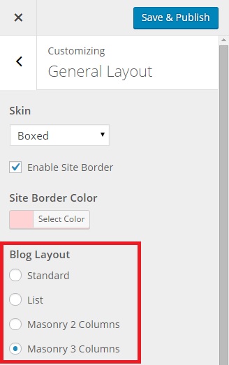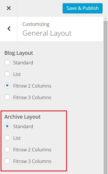 Category Pages which display all posts related to a particular category, Tag Pages which display all posts related to a particular tag, Author Pages which display all posts related to a particular author, etc., are called “Archive Pages“. To change the page layout of your archive pages, head to Appearance > Customize > General Settings > and choose from the layout options within the “Archive Layout” section.
