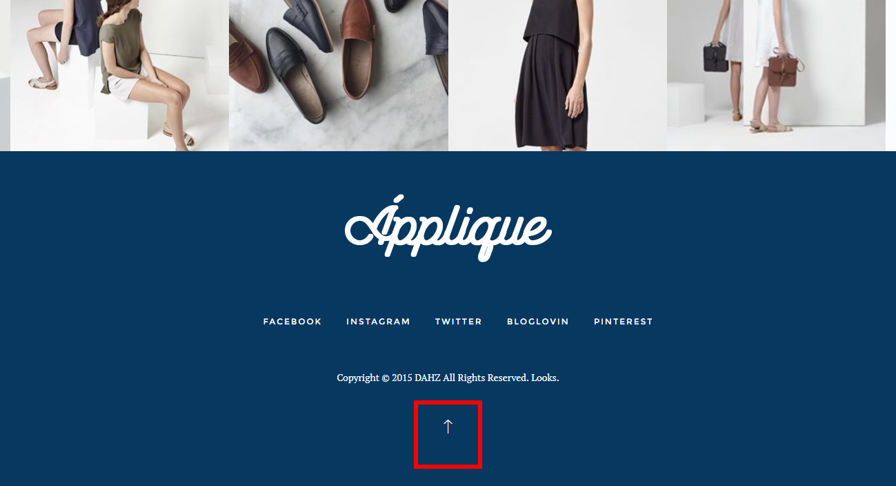 Applique’s footer has a widget area titled “Instagram Footer” where you can add in a widget to display your Instagram images in a full-width. The widget is simply called “Instagram” and is made available after installing & activating the plugin called Instagram Feed.