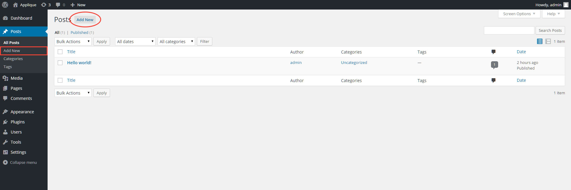To create a post go to WordPress Dashboard > Posts > Add New.